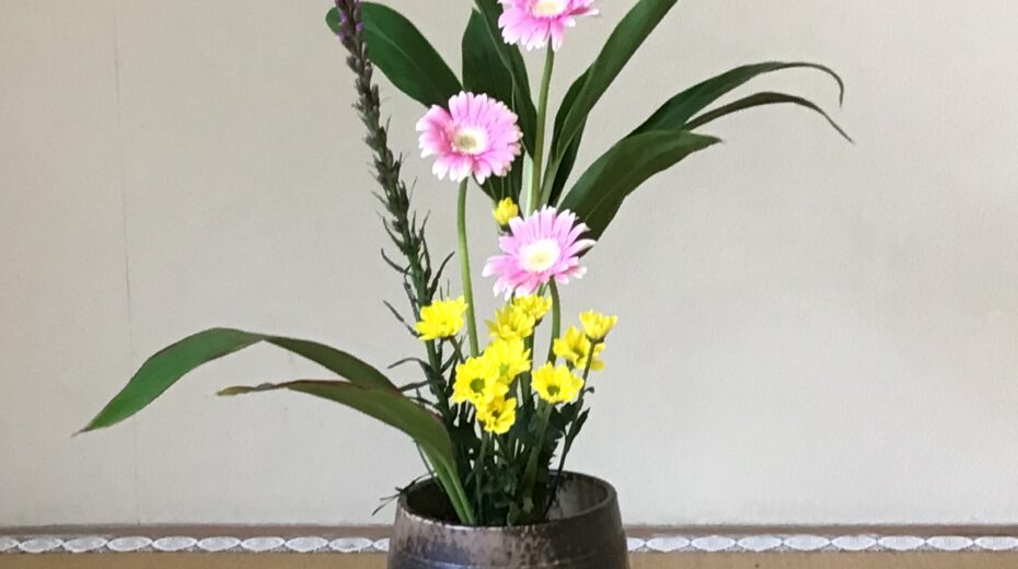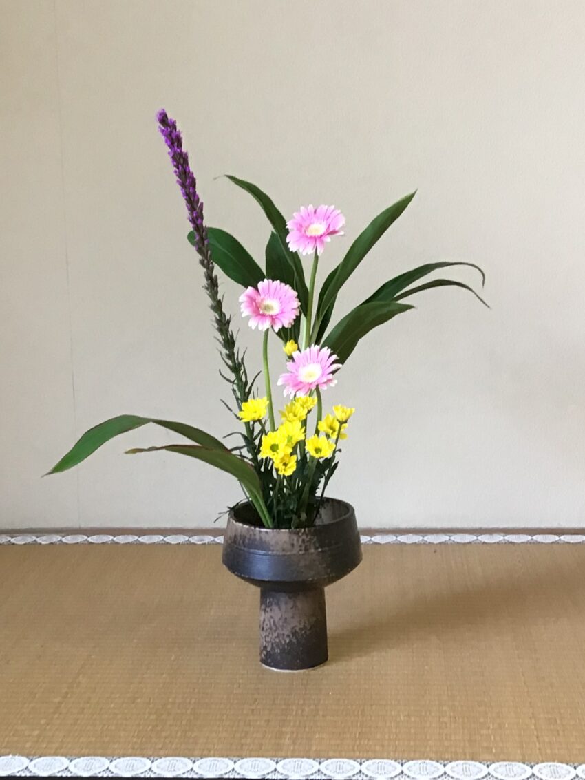 龍生派の基本花型と自由花型をお稽古しています。