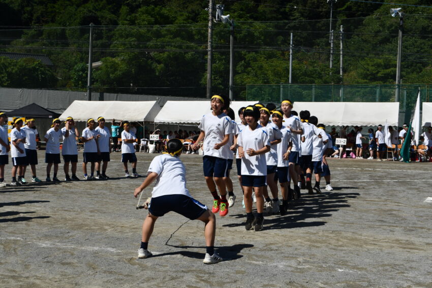 2025.10.07中学校【中学校】國學院 体育祭令和7年10月2日(木)第2グラウンド 第62回國學院祭体育祭が一日遅れで実施されました。中学校では、集団演技である「國栃ソーラン」をはじめ、台風の目や大縄跳び、借人競争などが行われました。「才華爛発」というテーマのもと、生徒たちは一丸となって練習してきた成果を存分に発揮し、どのクラスもそれぞれの種目で優勝を目指して切磋琢磨する姿が見られました。