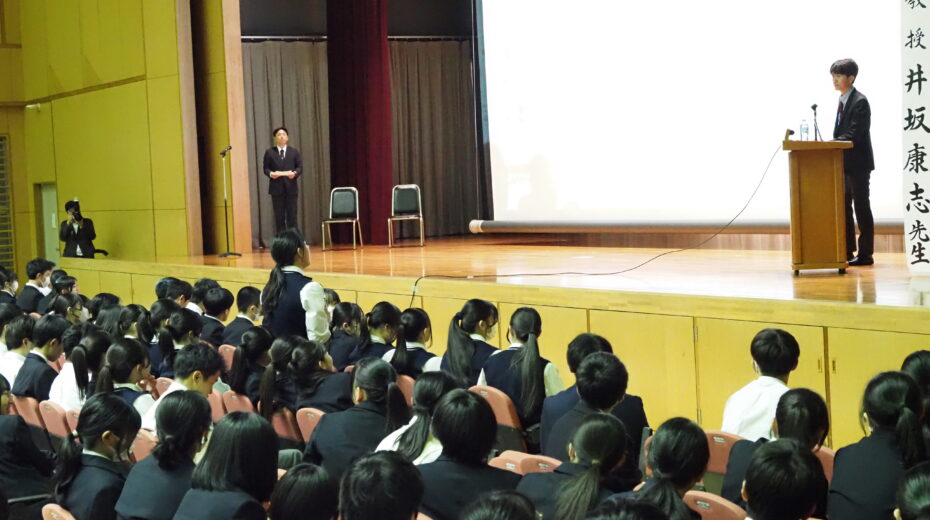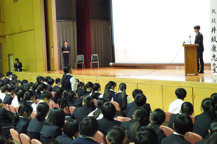 井坂様は、強みを見いだすことの大切さや、自分にふさわしい学び方を見つける意義について語られました。希望に満ちた時代を生きるためのヒントにあふれたお話に、生徒たちは熱心に耳を傾け、講演後には多くの質問が寄せられました。