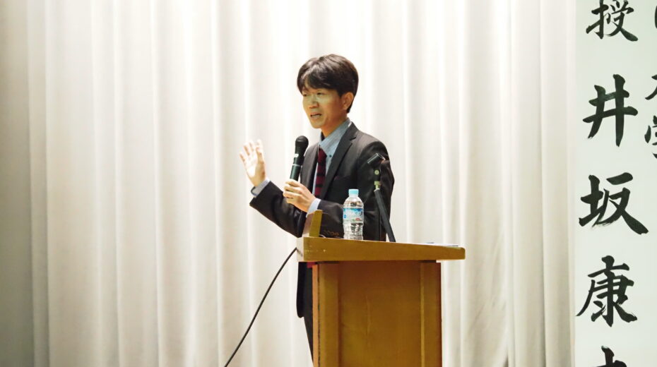 学園創立65周年記念講演会が10月7日(火)に行われました。今年度は本校の卒業生であり、現・ものつくり大学教養教育センター教授の井坂康志様を講師にお招きし、「『強み』の上に築く――経営学者、人生を語る」と題してご講演いただきました。