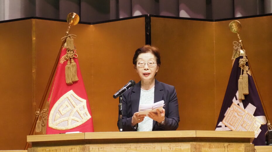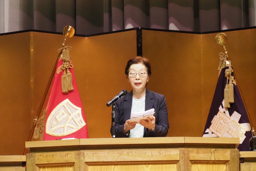 記念式では、太田映子学園理事長が式辞を述べ、学校創立から現在に至るまでの歴史や、本学園の発展に尽力された佐々木周二先生について語られました。式辞の後、校歌を斉唱し、式は終了しました。