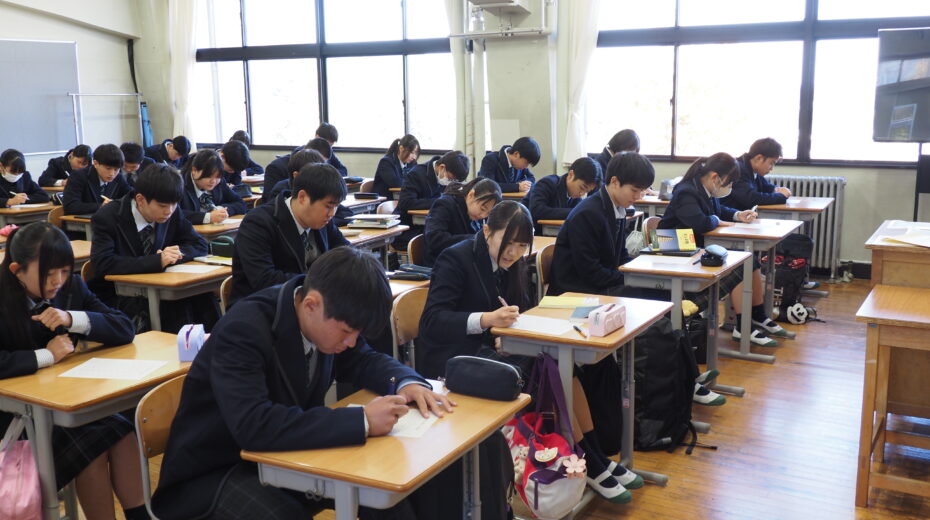 また、2時間目には生徒会立会演説会が行われ、各役職の立候補者とその推薦者がそれぞれ演説を行いました。演説会終了後には、全校生徒が各教室に戻り、投票を実施しました。