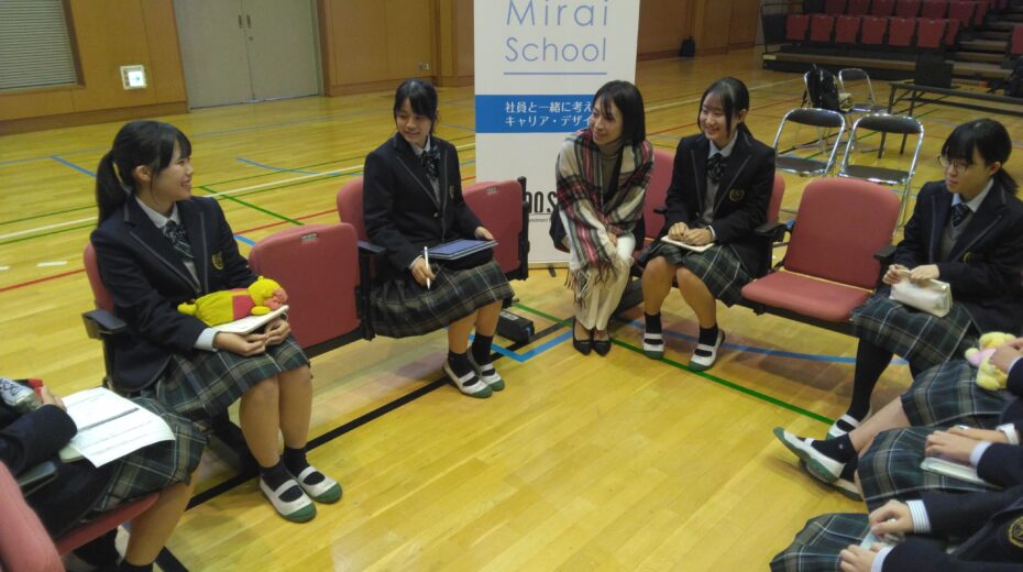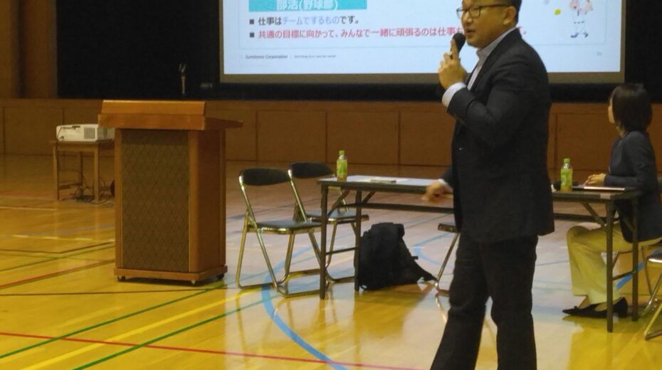 高校1年生を対象に、キャリア講演会(住友商事キャリア教育支援 「Mirai School」)が実施されました。昨年度に引き続き、住友商事から2名の方を講師としてお招きし、講演、ワークショップ、座談会が行われました。
