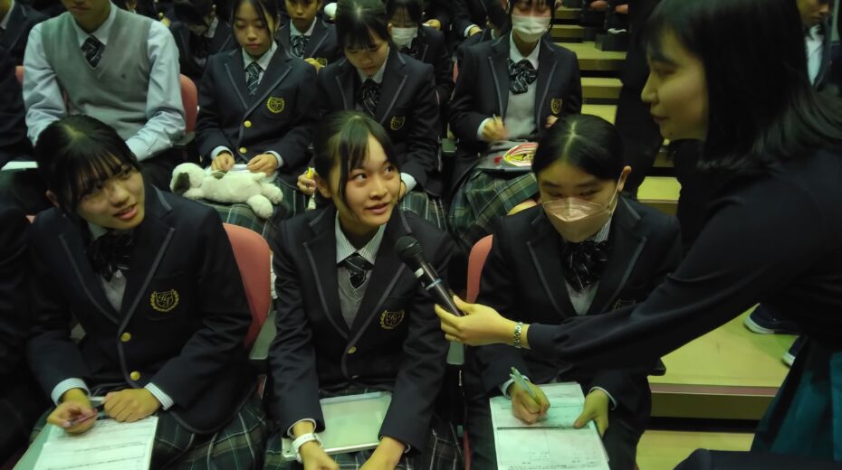 講師の方々は生徒に語りかけるように話を展開し、Work Timeでは生徒たちも意欲的に対話を交わしていました。休憩時間には多くの生徒が講師を囲み、活発に交流していました。講演会は全体として盛況のうちに終了しました。