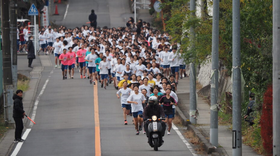 やや肌寒さを感じるも、マラソンを実施するにはちょうどいい秋空のもと、第63回マラソン大会が開催されました。9:30より開会式が行われ、その後、生徒は準備運動を行いました。しっかり準備運動を行ったあと、発走グループごとにスタート位置に移動し、男子は10:00、女子は10:15に学園坂下をスタートしました。栃木農業高校の横を抜けて永野川沿いを走り、栃木工業高校の横から太平山に向けて山登りのコースに挑みました。その後、長谷川平で女子は左折し、下りのコースで一路学校へ、男子はさらに山頂まで直進して、その後一気に学校まで下ってきました。上位入賞の生徒は男女とも30分ちょっとで太平山を見事に走破していました。時間のかかった生徒も最後まで諦めず走りぬいてゴールし、マラソン大会は無事終了しました。