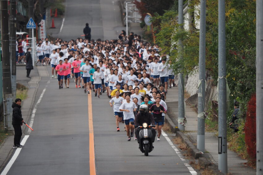 やや肌寒さを感じるも、マラソンを実施するにはちょうどいい秋空のもと、第63回マラソン大会が開催されました。9:30より開会式が行われ、その後、生徒は準備運動を行いました。しっかり準備運動を行ったあと、発走グループごとにスタート位置に移動し、男子は10:00、女子は10:15に学園坂下をスタートしました。栃木農業高校の横を抜けて永野川沿いを走り、栃木工業高校の横から太平山に向けて山登りのコースに挑みました。その後、長谷川平で女子は左折し、下りのコースで一路学校へ、男子はさらに山頂まで直進して、その後一気に学校まで下ってきました。上位入賞の生徒は男女とも30分ちょっとで太平山を見事に走破していました。時間のかかった生徒も最後まで諦めず走りぬいてゴールし、マラソン大会は無事終了しました。