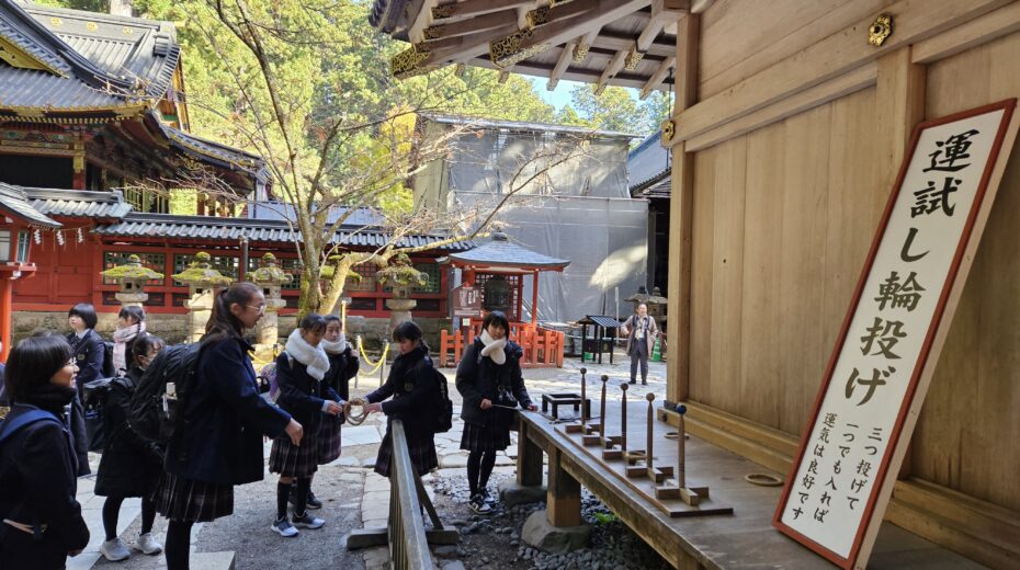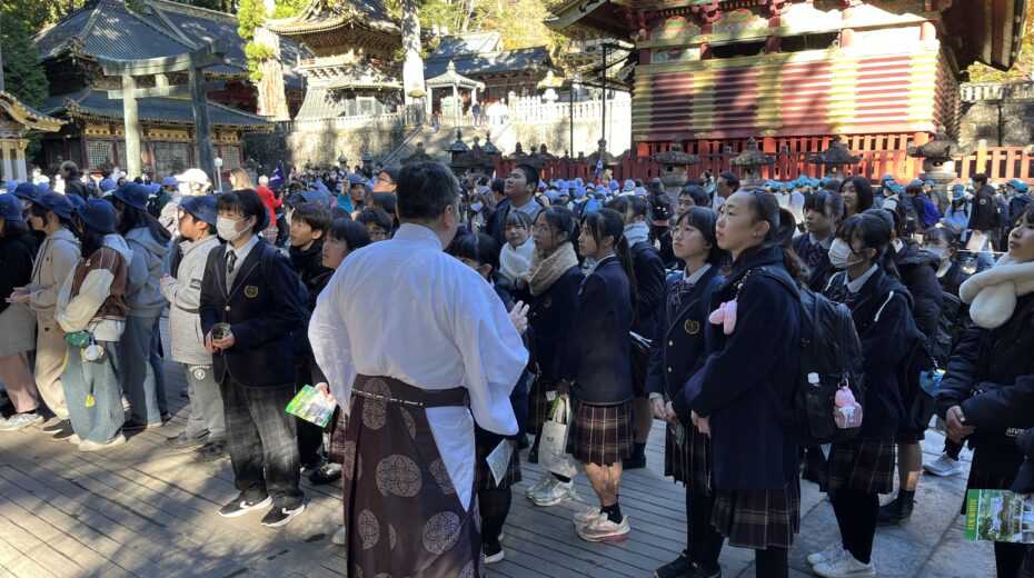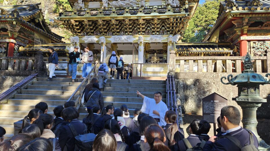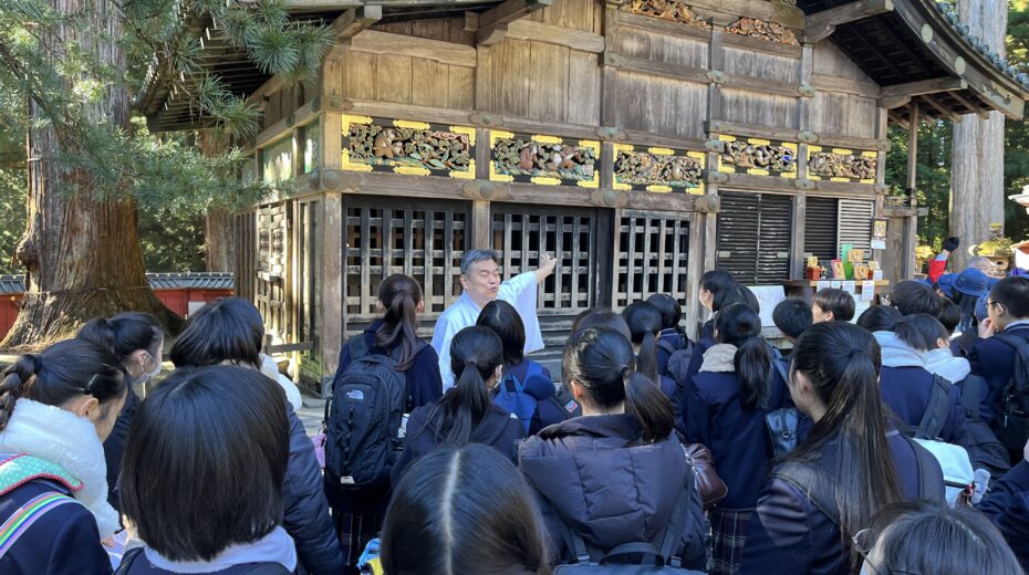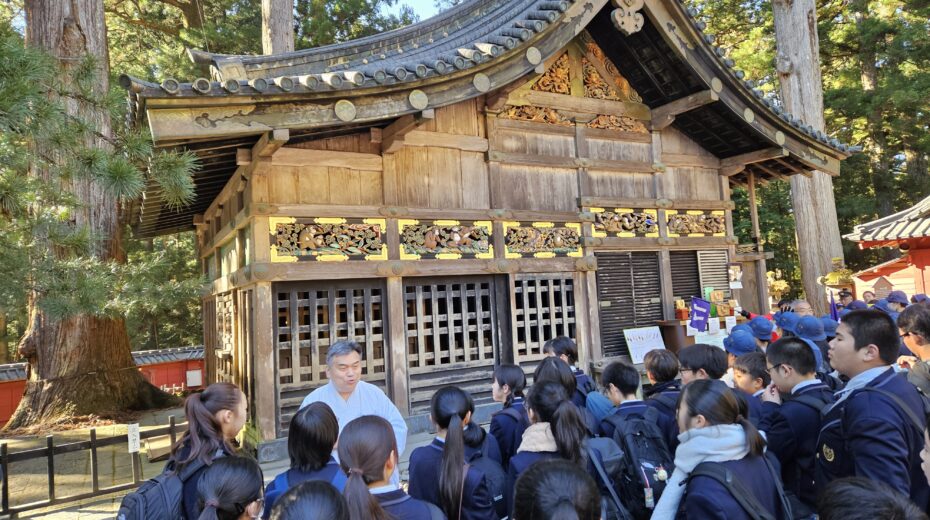 1年生が11月12日(水)の午前中に日光東照宮、午後に二荒山神社を見学しました。正式参拝や宮司さんから直接説明をしていただいた後、グループに分かれて各自のテーマに沿って見学・学習をしてきました。