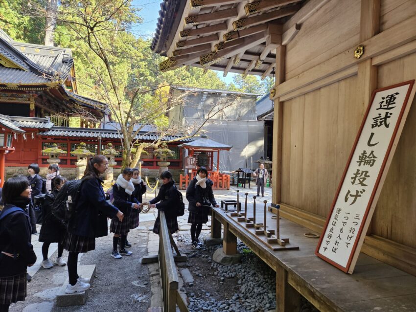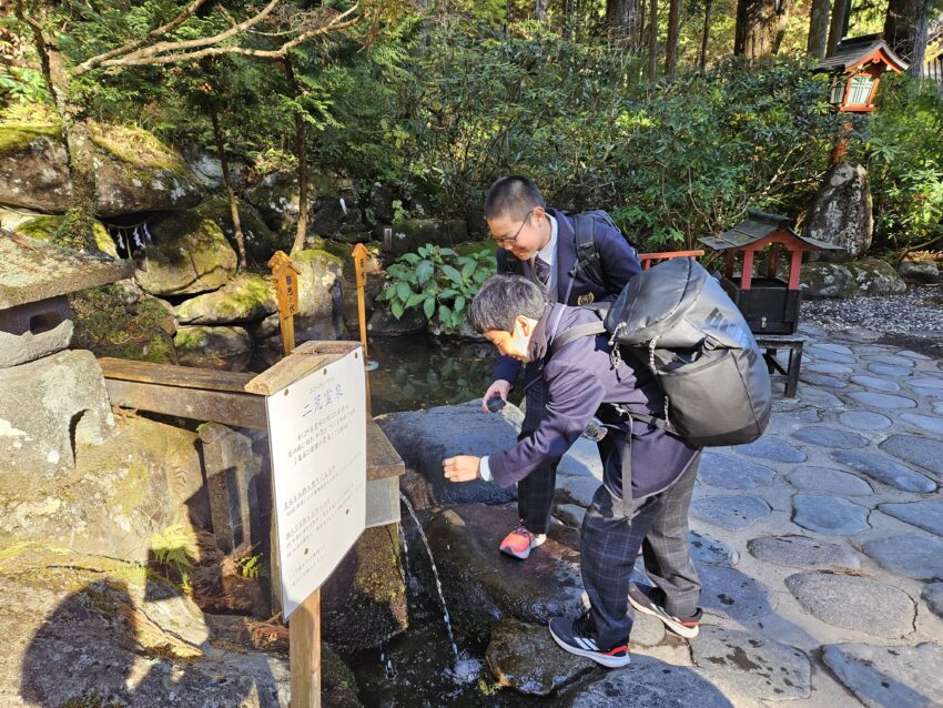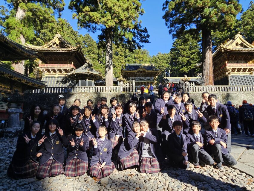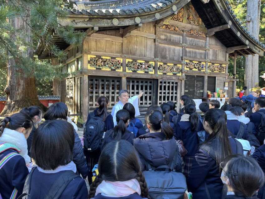 1年生が11月12日(水)の午前中に日光東照宮、午後に二荒山神社を見学しました。正式参拝や宮司さんから直接説明をしていただいた後、グループに分かれて各自のテーマに沿って見学・学習をしてきました。