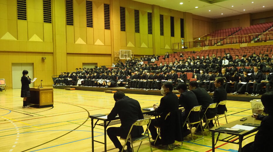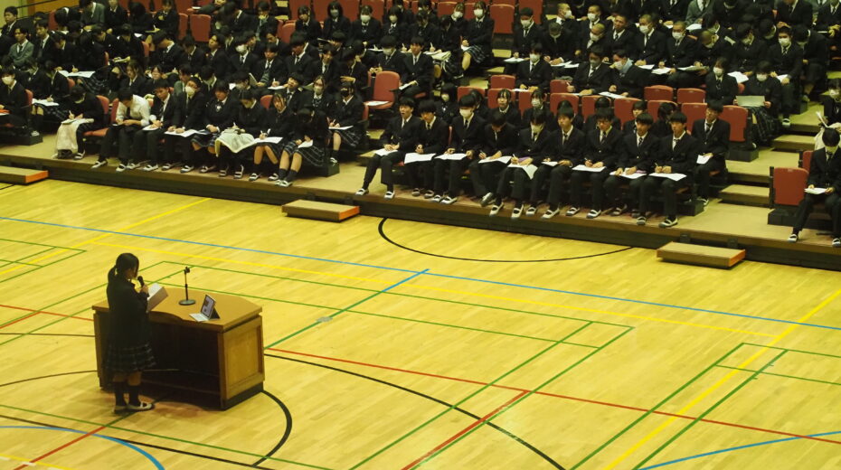 総合的な探究の時間などを使い、個人で設定したテーマに沿って進めてきた探究活動の集大成です。各クラスから1人ずつ代表が選ばれ、計10名が発表を行いました。