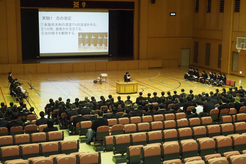 発表者たちのテーマは、若者や社会が抱える問題、将来の職業に関連する内容など多岐にわたり、実験結果がわかりやすくまとめられ、考察もよく練られていました。発表者たちの真剣な態度や発表の様子に、聴衆の生徒たちもしっかりと耳を傾け、学びの多い充実した会となりました。