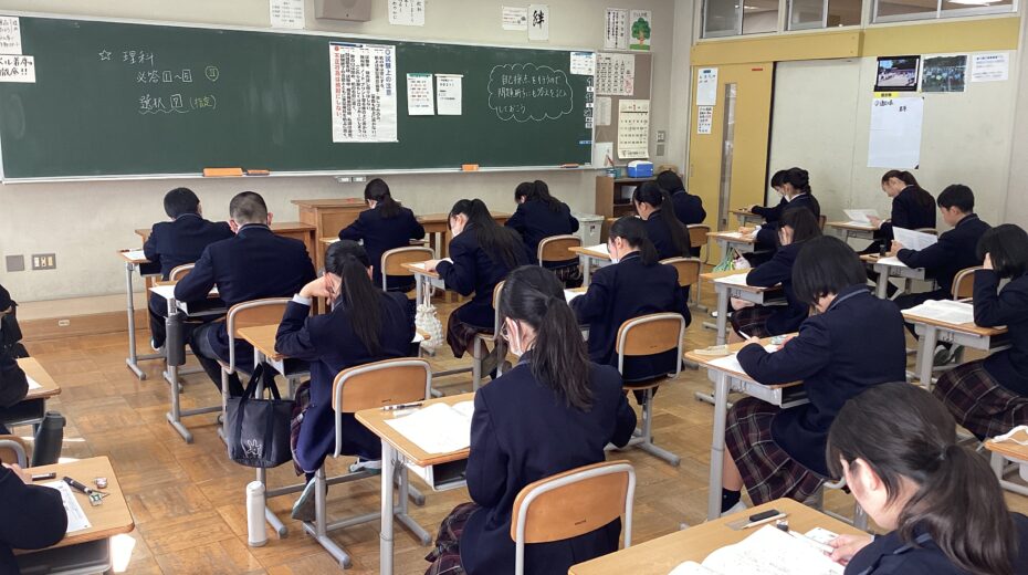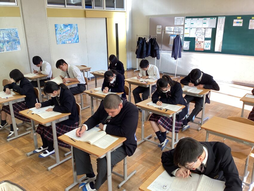 2026.01.20中学校【中学】第3回全国テスト実施令和8年1月13日(火)、14日(水) 各HR教室 Benesse学力推移調査と育伸社私学テストが、2日間に分けて行われました。これまでに学習した内容の定着を図る目的で実施されています。生徒たちは、前回よりも定着率が上がるように準備し、真剣に取り組んでいました。