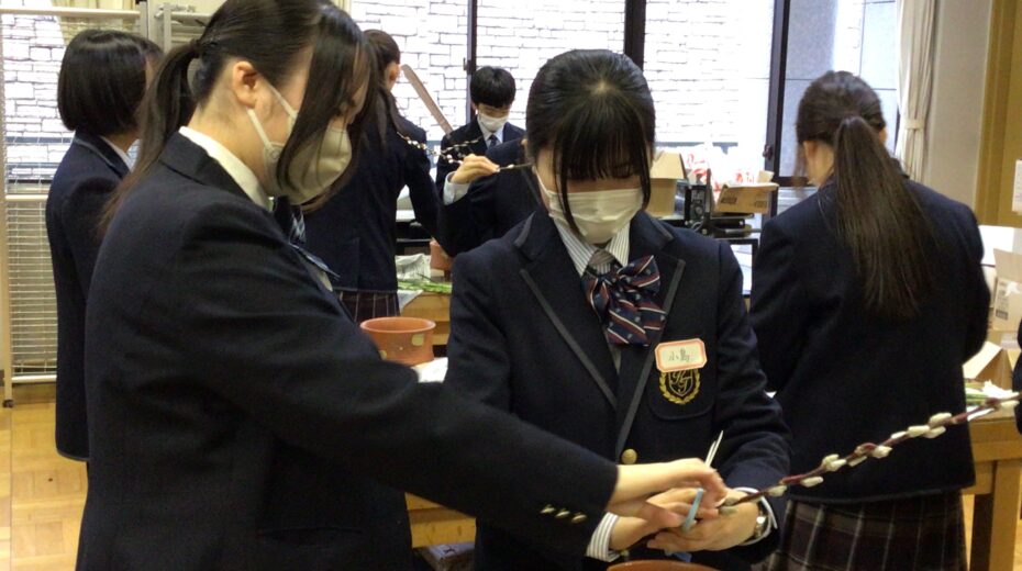 また、准教授の免状を持つ本校華道部3年生と卒業生もアシスタントとして参加し、中学生の指導にあたりました。