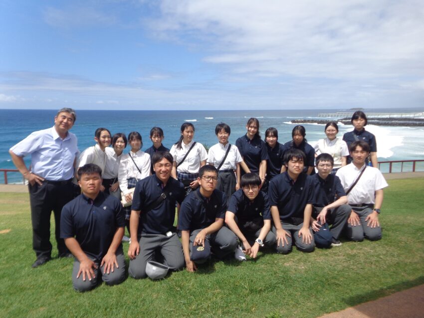 その後、ポイントデンジャーにて、クラスの集合写真を撮りました。生徒は、高台の展望スポットから、見晴らしのいい景色を見て、記念撮影をしていました。