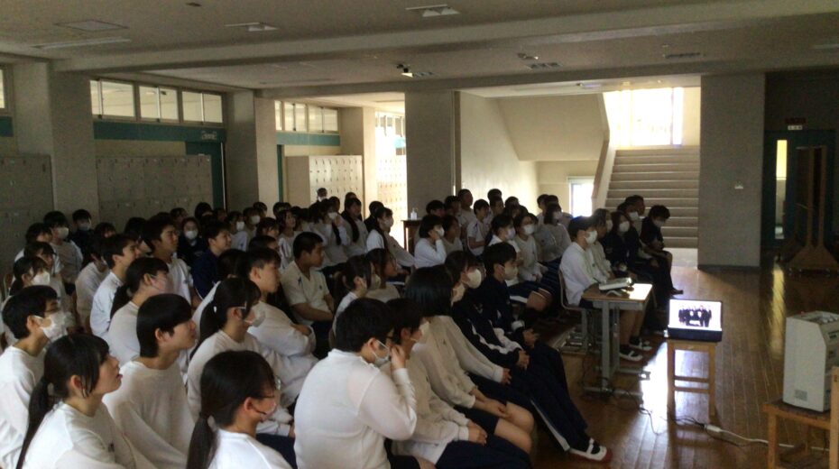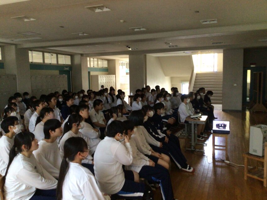 2026.03.08中学校【中学校】3年生を送る会令和8年3月6日(金) 本校体育館、中学校校舎フロア 卒業式前の最後の学校行事として、生徒会が中心となり3年生を送る会が実施されました。第1部は体育館でレクリエーションが行われ、学年混合の4チームに分かれてドッジボールと大縄を行いました。第2部は中学校フロアで行われ、部活動やお世話になった先生方からのメッセージ、フェアウェルパーティーの映像が上映されました。学年間の交流を図り、中高一貫コースとしての先輩後輩の関係をより深めることができました。