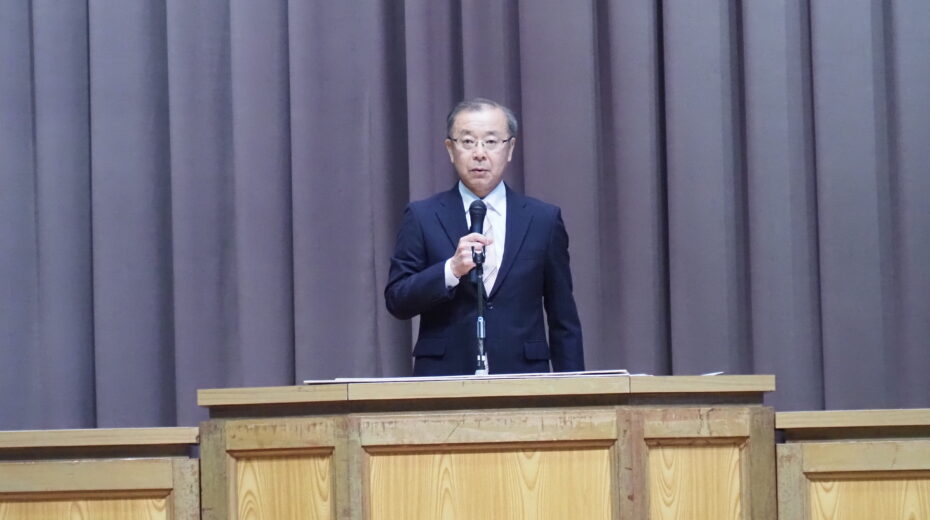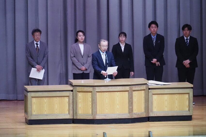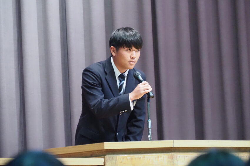 始業式の式辞では、實島範朗校長より、卒業生の進路における健闘が紹介されました。あわせて、今年度は「人を大切に」というテーマを掲げ、充実した学校生活を送ってほしいというメッセージが生徒たちへ送られました。また、春休み中に開催された全国大会の報告や表彰伝達も行われ、会場は温かな拍手に包まれました。